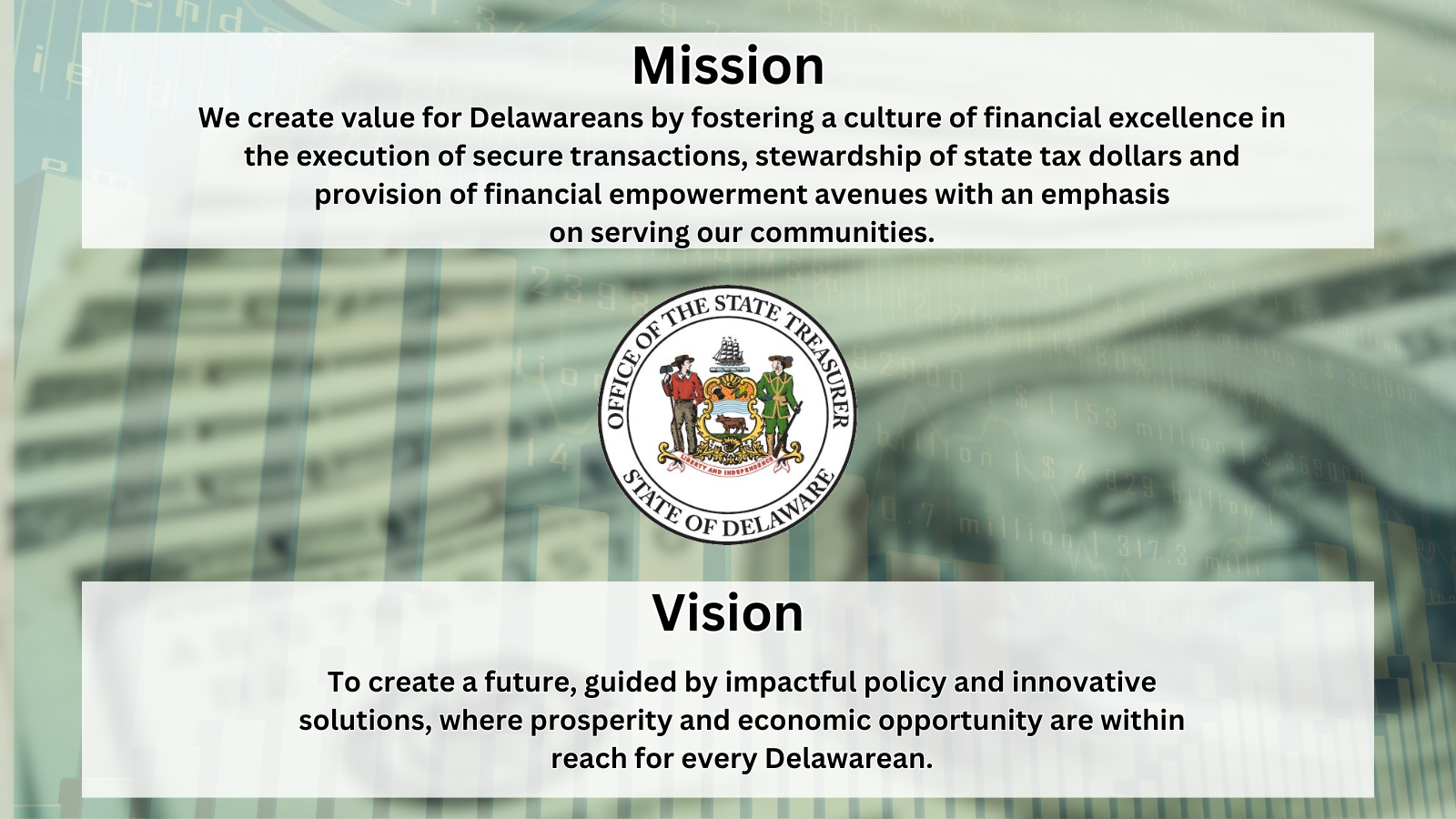 Financial background with mission and vision statements for the Office of the State Treasurer
