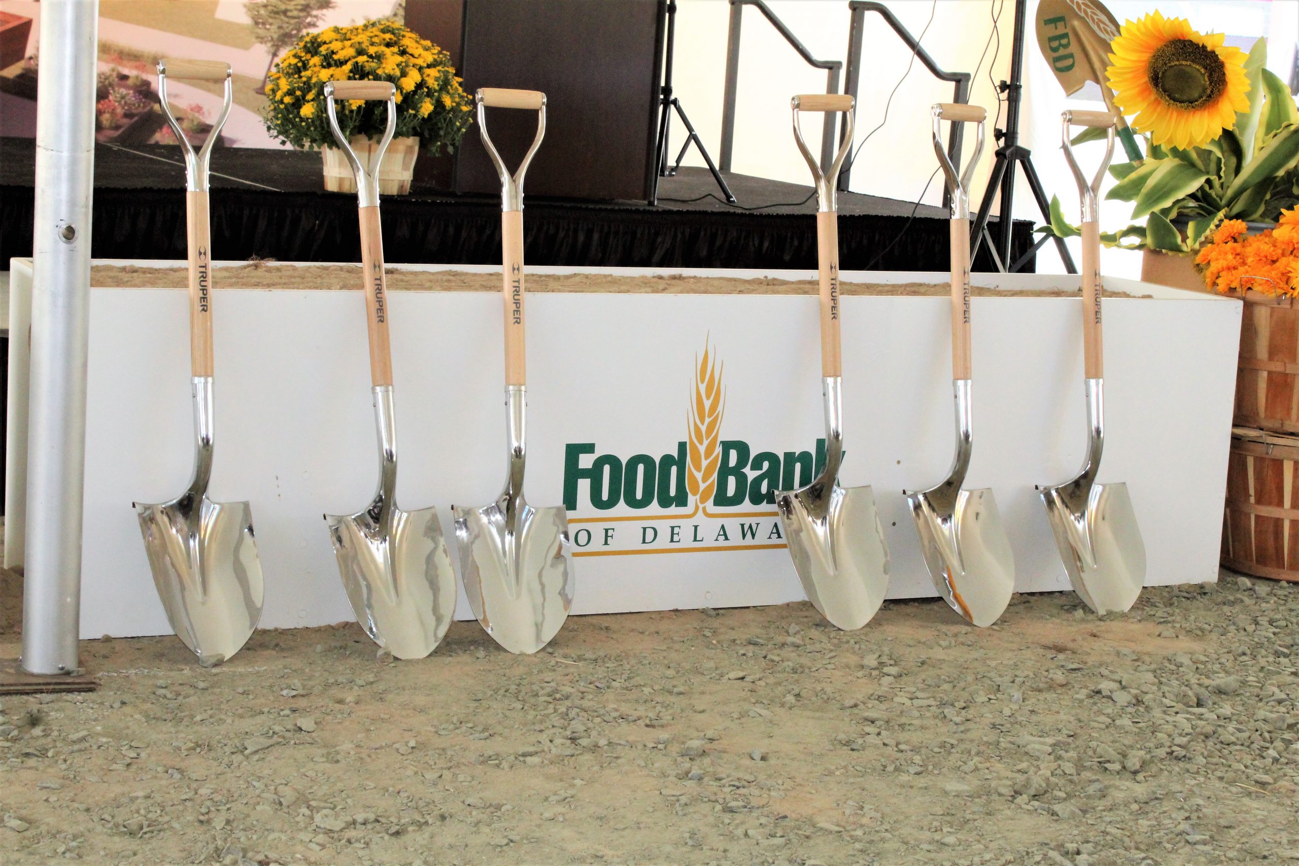 Food Bank Groundbreaking Shovels on display